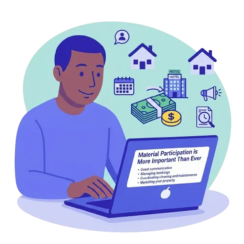 To qualify for the STR Loophole, you must materially participate in your STR business. This means you must be actively involved in the day-to-day management of your property. With the changes in the tax law, the IRS is expected to increase its scrutiny of material participation claims.