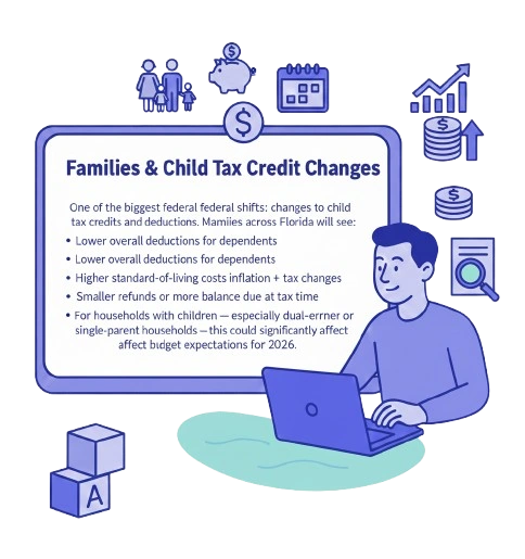 One of the biggest federal shifts: changes to child tax credits and deductions. Many families across Florida will see: