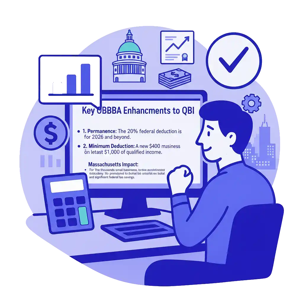 👉 Massachusetts Impact: For the thousands of small businesses that drive the Massachusetts innovation economy, the permanent federal QBI deduction provides certainty and significant federal tax savings.