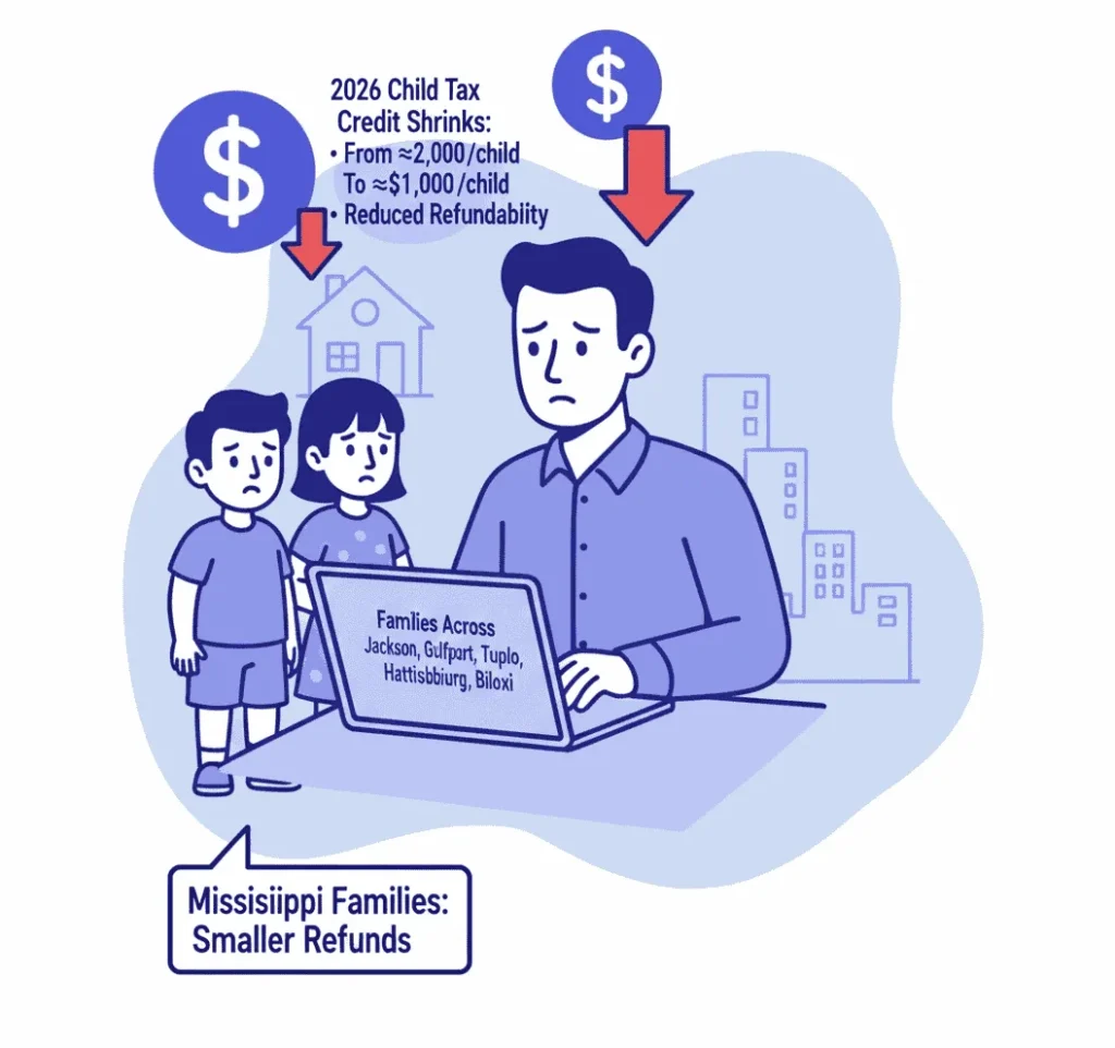 Families across Mississippi — especially in Jackson, Gulfport, Tupelo, Hattiesburg, and Biloxi — will see smaller refunds.