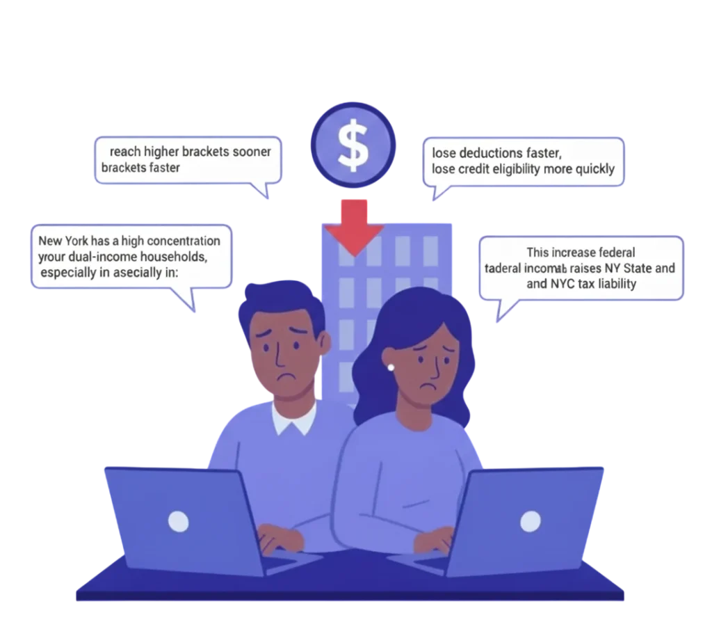 High-income professionals in NYC will experience a combined federal + state + city burden significantly larger than in prior years.