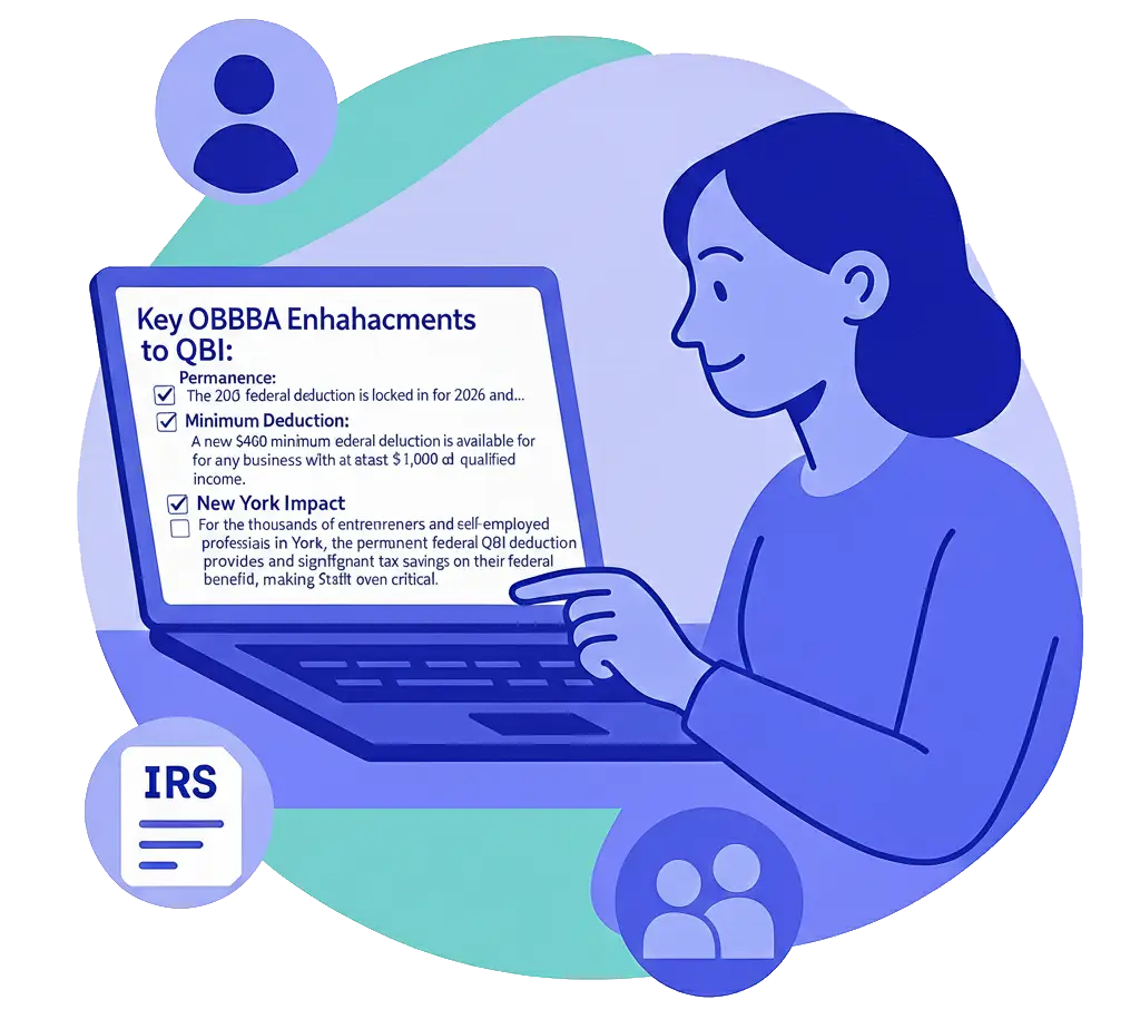 New York Impact: For the millions of entrepreneurs and self-employed professionals in New York, the permanent federal QBI deduction provides certainty and significant tax savings on their federal return. New York State does not offer a state-level QBI deduction, making this federal benefit even more critical.