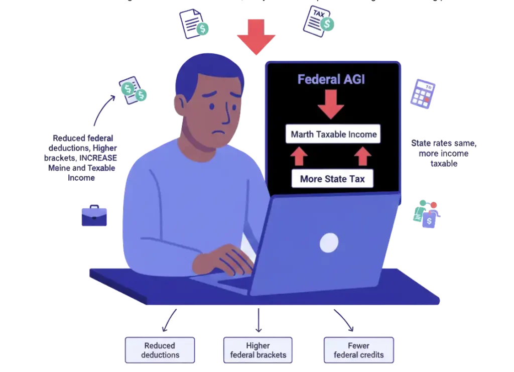 Federal changes to QBI, credits, and deductions directly affect these workers, and higher AGI shifts their state tax burden upward.
