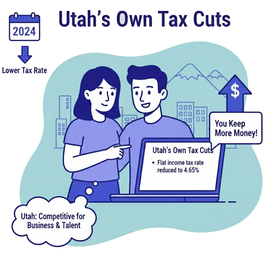- Lower Federal Tax Brackets are PERMANENT: The lower individual income tax rates from the TCJA are here to stay. This is a crucial win for Utah's booming tech sector, families, and skilled professionals.