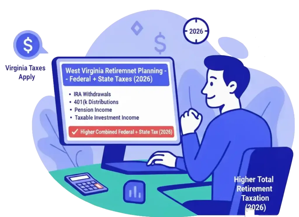 Because West Virginia uses federal AGI as the starting point, this increase in federal taxable income also raises West Virginia state taxable income.