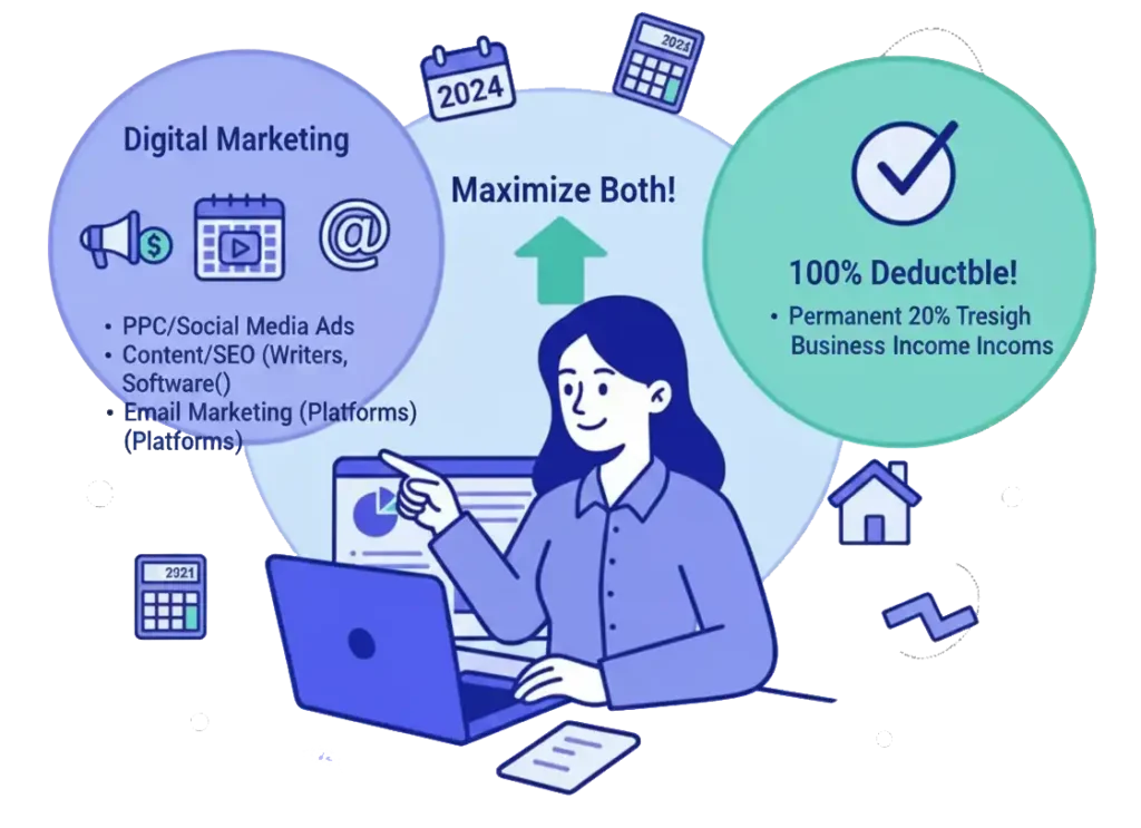 In the digital age, marketing is more complex and more critical than ever. The good news is that almost every dollar you spend to promote your business is deductible. This is a broad category, so let’s break it down into its modern components