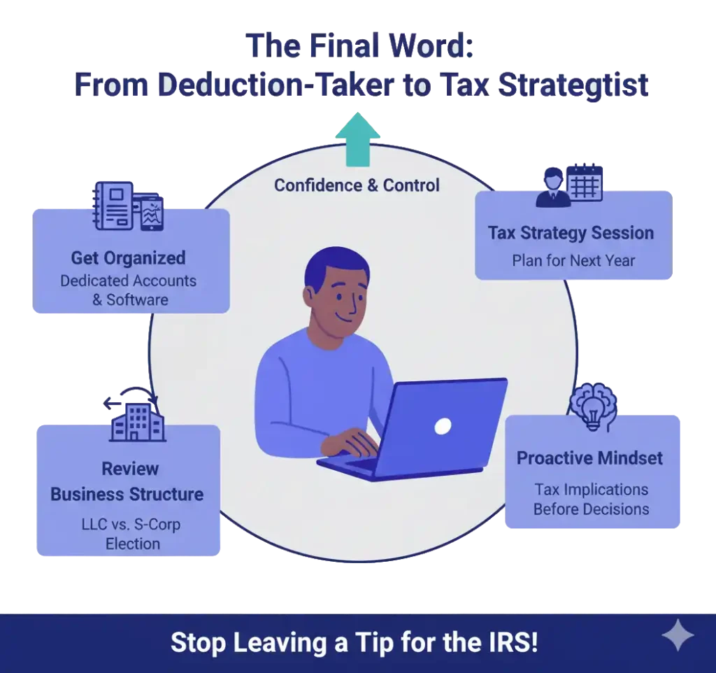 By taking these steps, you can transform your relationship with taxes from one of fear and frustration to one of confidence and control. You can stop leaving a tip for the IRS and start keeping more of your hard-earned money where it belongs: in your business and in your pocket.