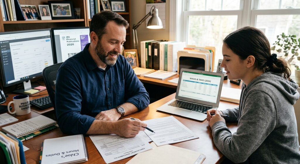 Quick Answer: The 2026 hiring your kids tax strategy lets business-owner parents pay their children wages for real work. Those wages become a deductible business expense, reduce the parent’s taxable income, and shift money into a lower tax bracket — all legally under the IRS employment tax rules.