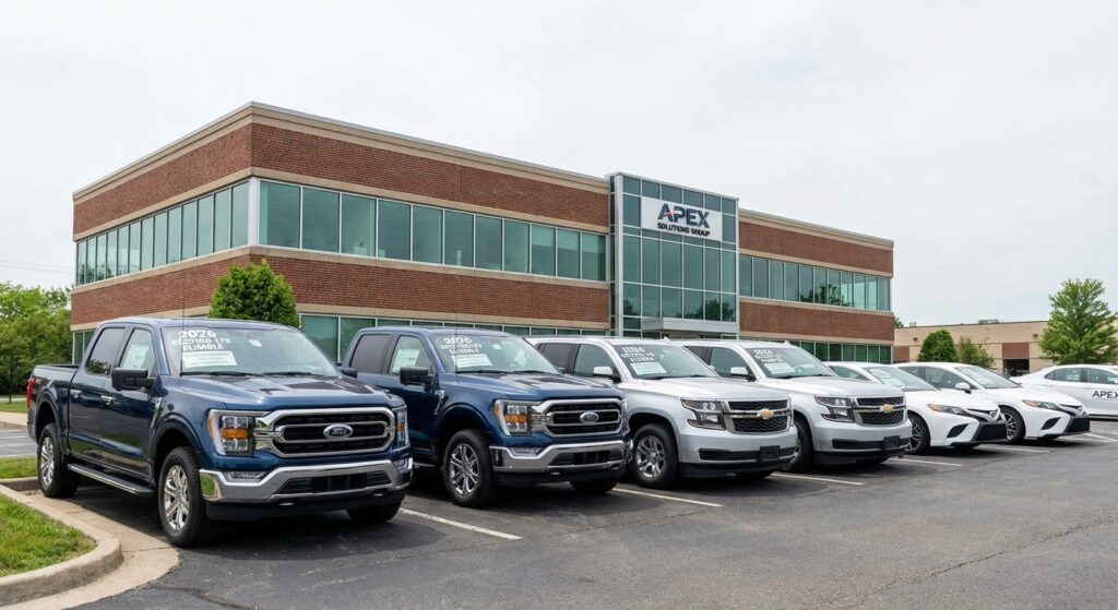 Financial Profile: 2026 projected business income: $450,000 before vehicle deductions. Current vehicle fleet aging, with a 2012 F-150 approaching replacement and a 2008 GMC Sierra due for retirement. Total vehicle costs: $85,000 for two new U.S.-assembled pickup trucks.