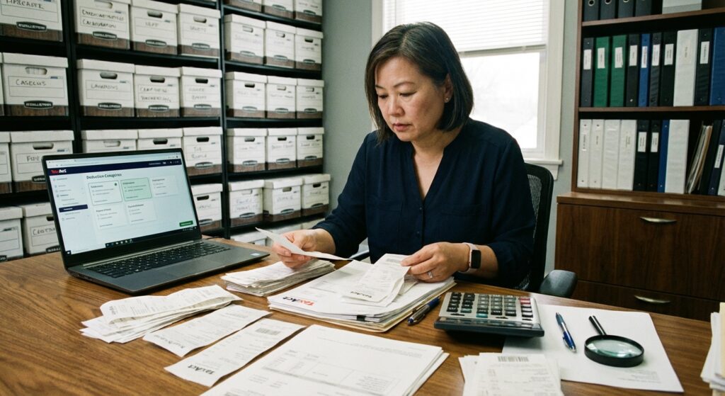 Action step: Digitize all receipts immediately using a mobile app like Expensify or Receipt Bank. Store files in cloud storage by category (software, supplies, mileage, etc.) for easy tax preparation review.