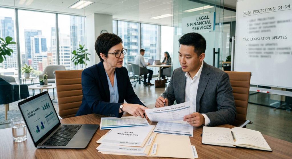 • Retirement plan strategy (401(k), SEP-IRA, Solo 401(k)) with 2026 contribution optimization