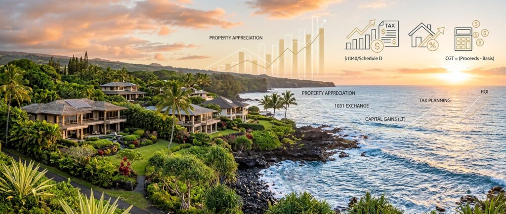 If you own property or investments in Hilo, capital gains taxes will eventually affect you – whether you sell a rental, cash out a brokerage account, or downsize your primary home. Knowing how federal rules apply, and how Hawaii’s rules differ, can save you thousands when you sell.