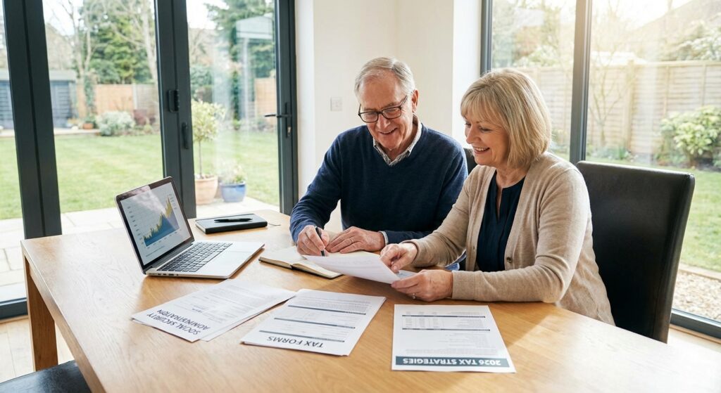 Maria, age 70, receives $3,500 monthly in Social Security. She has $45,000 in pension income and $15,000 in dividend income annually. Her combined income ($45,000 + $15,000 + $1,750 [50% SS] + $3,500 [half of SS] = $65,250) exceeds the $25,000 threshold. Without planning, roughly $5,600 of her annual Social Security would be taxable. However, claiming the $6,000 senior deduction reduces her taxable income by $6,000, eliminating most or all of the Social Security taxation. Tax savings: approximately $1,320 (at 22% rate).